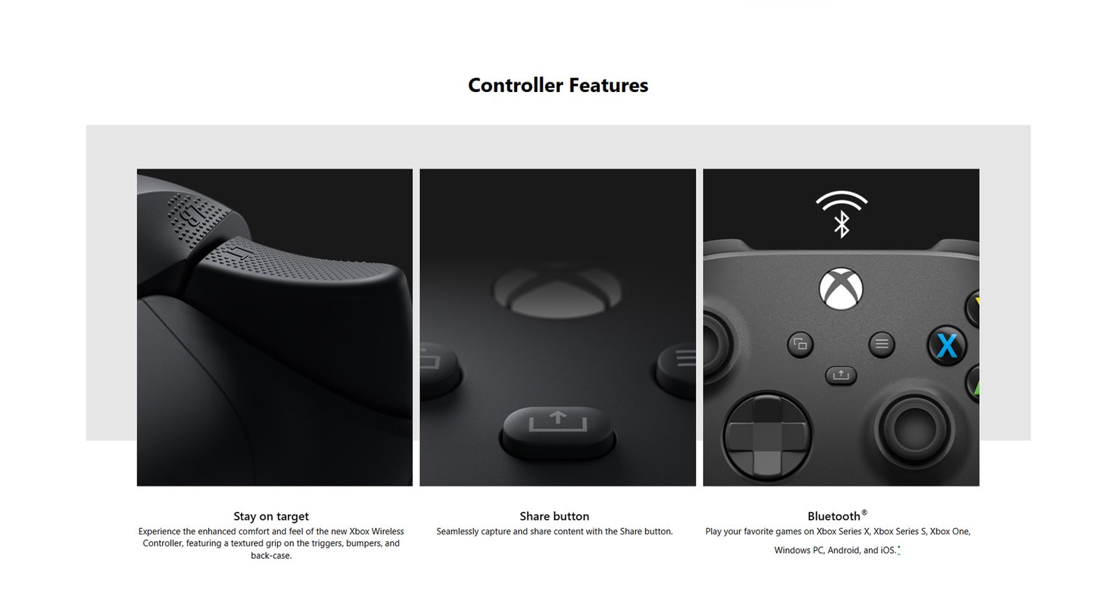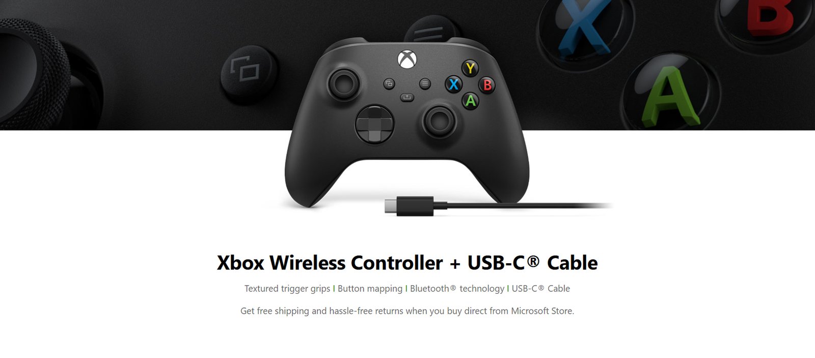 Textured trigger grips | Button mapping | Bluetooth® technology | USB-C® Cable